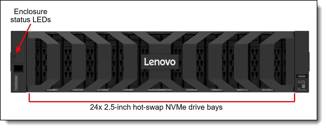 Figure 4. ThinkSystem DS240N 2U SFF NVMe expansion enclosure front view