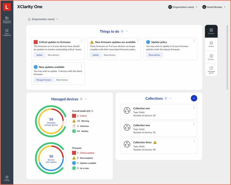Lenovo XClarity One provides a modern, intuitive interface to manage and monitor your management hubs and managed devices.