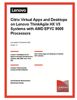 Lenovo VDI Solutions for Citrix Virtual Apps and Desktops help your organization to achieve a secure, scalable, and efficient VDI solution that enhances employee productivity, reduces operational costs, and supports digital transformation initiatives. The solution streamlines deployment, updates, and policy enforcement through centralized control, reducing IT overhead and accelerating provisioning times. Citrix Virtual Apps and Desktops delivers an immersive, feature-rich user experience for end users, allowing them to work anytime, anywhere, on any device. It supports a consistently rich end user experience for office workers, mobile workers and even 3D developers across devices, locations, media and connections.